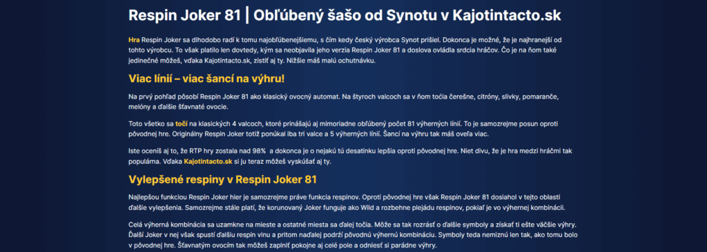 Spoločnosť Kajot Intacto je známy pojem vo svete hazardu so svojimi kasínami. Pre svoje online kasíno potrebovali jednoduché preklady, korekcie textov a aj tvorbu nových textov.